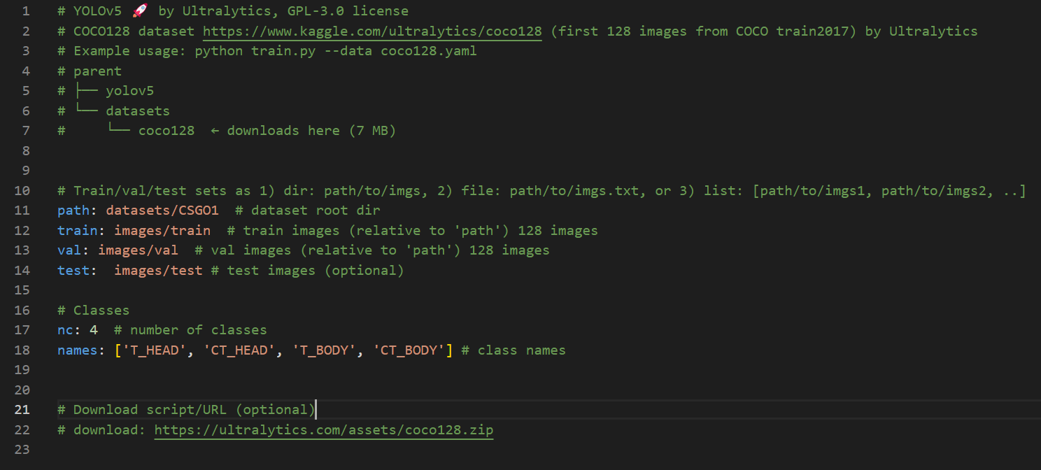 parser.add_argument('--data', type=str, default=ROOT / 'datasets/CSGO/csgo.yaml', help='dataset.yaml path') # 训练数据配置文件xxx.yaml绝对路径